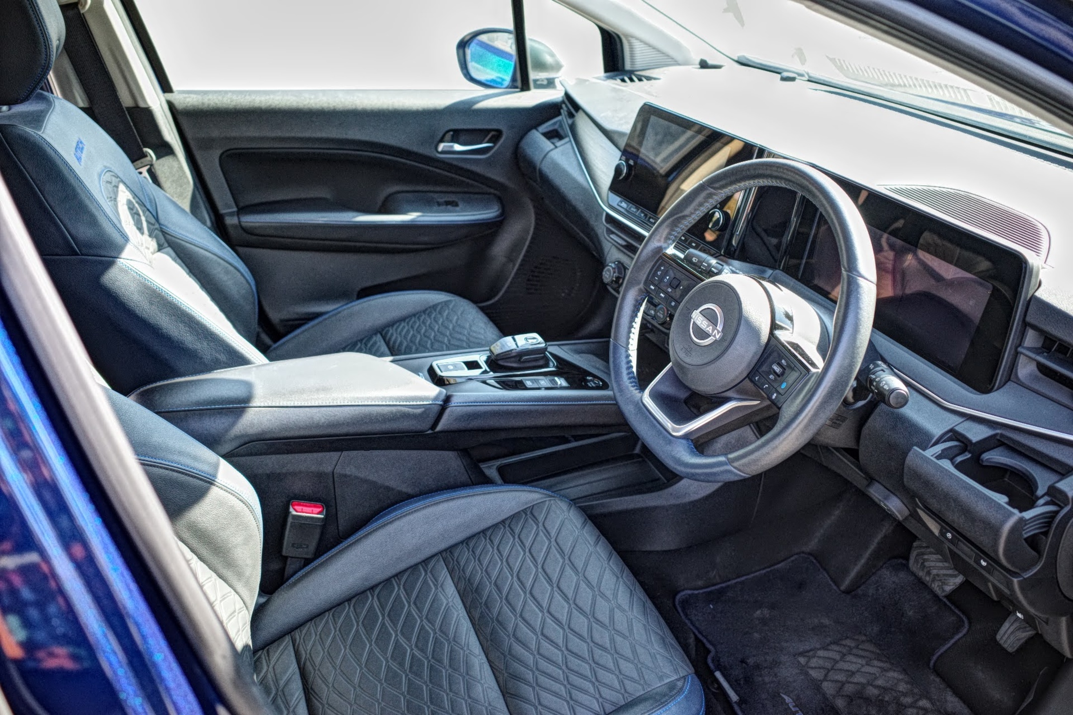 Interior: Premium Blue/Black Leatherette with signature blue stitching.